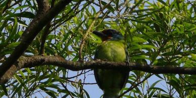 五色鳥,又名臺灣擬啄木,因其羽毛有五種顏色而得名。 臺語稱花仔和尚,身長約20-23公分,喙基上黑色嘴鬚發達,身體多為翠綠色,頭部大部份為藍色,額頭和喉部有黃色分布,眼先和前頸有小部份紅色,眼部至耳羽上方則為黑色,粗厚嘴部為黑色,腳爪灰色。